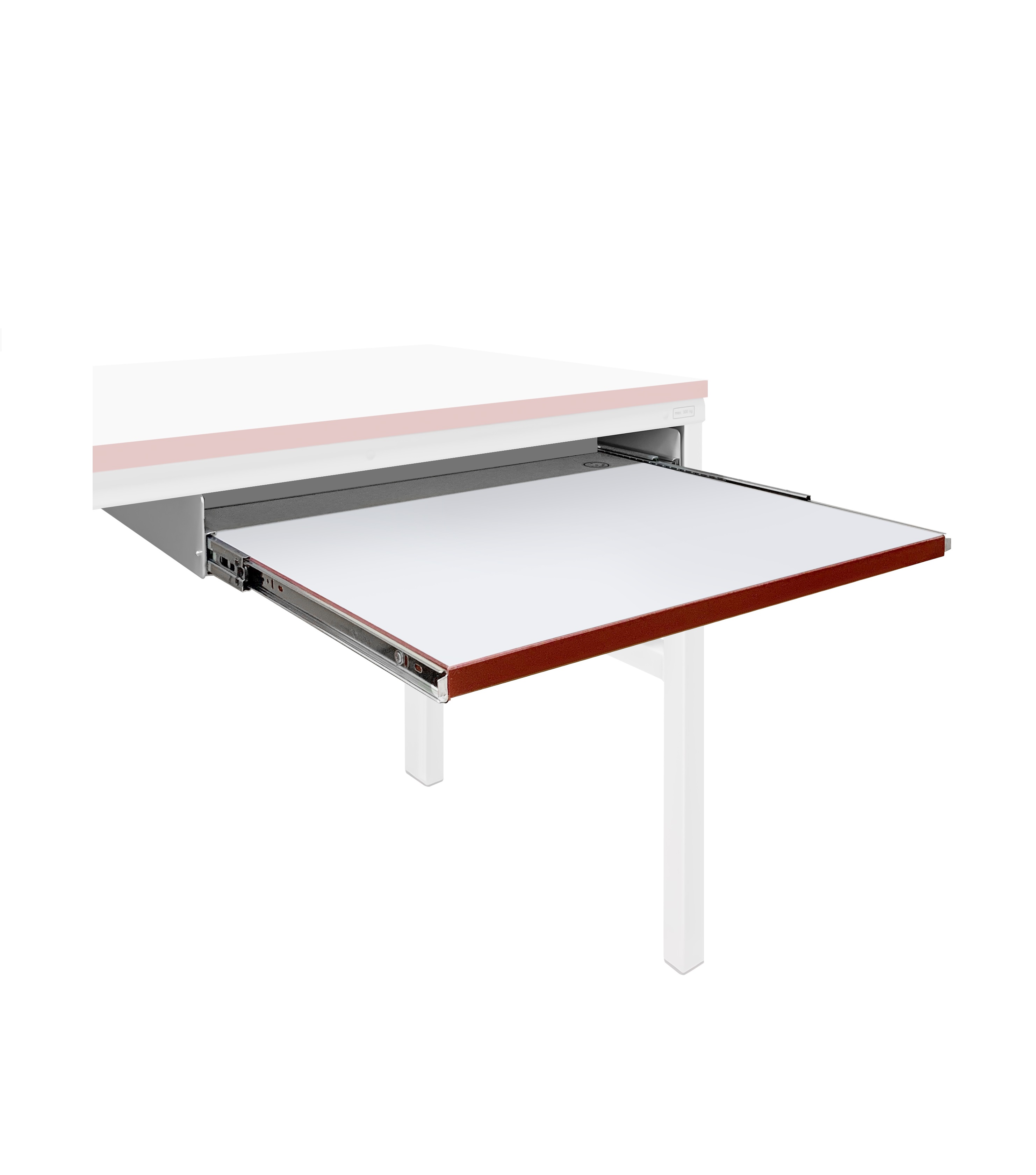 Полка выдвижная предназначена для размещения оборудования, документации и комплектующих небольшого размера. Полка устанавливается под столешницей в доступном по ширине полки для ее установки месте. Расстояние от поверхности полки до каркаса стола 50 мм. Распределенная нагрузка на полку до 15 кг. Полка изготавливается в промышленном и антистатическом ESD исполнении.