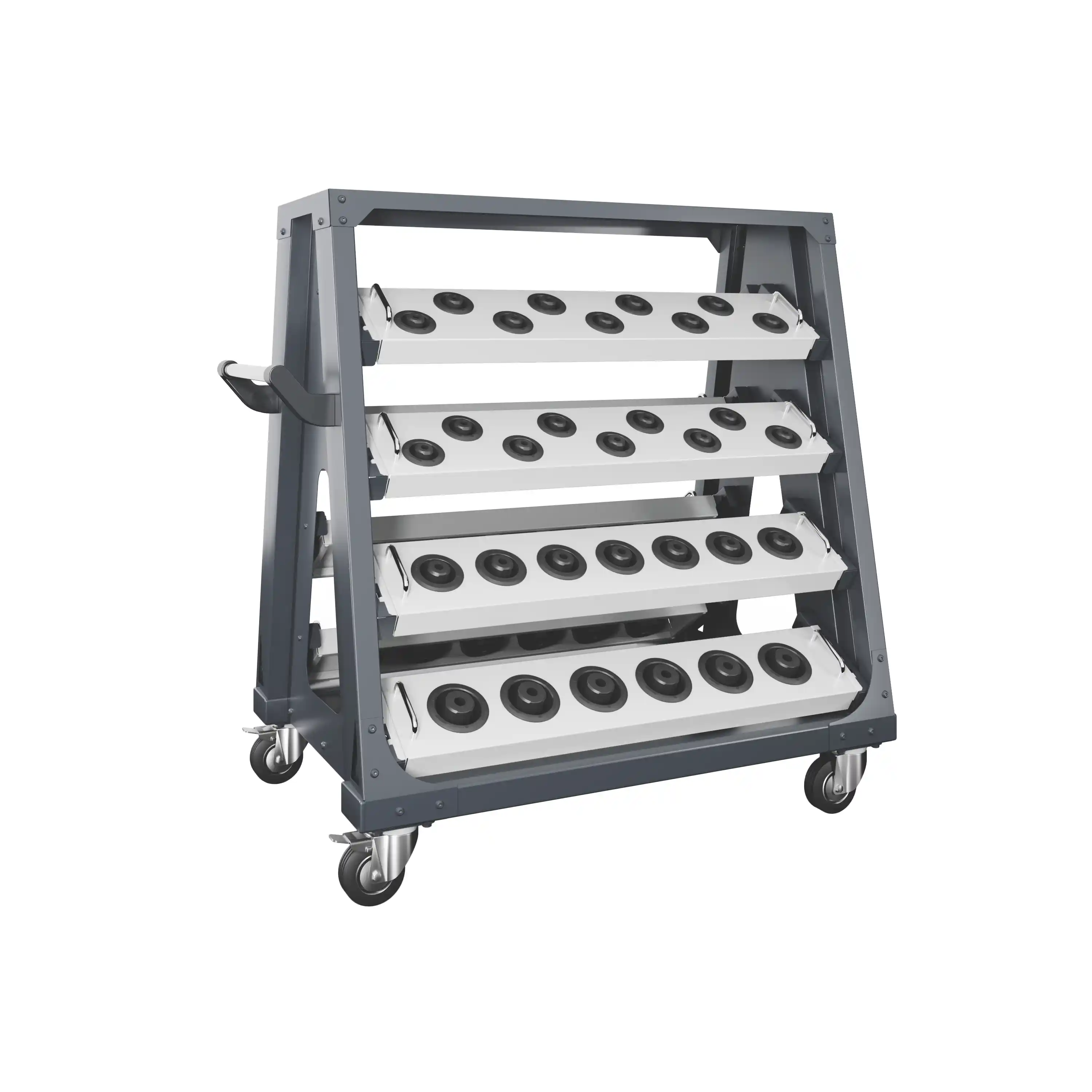 Тележка для хранения станочной оснастки, приспособлений и инструмента в мастерских, цехах и других производственных зонах.